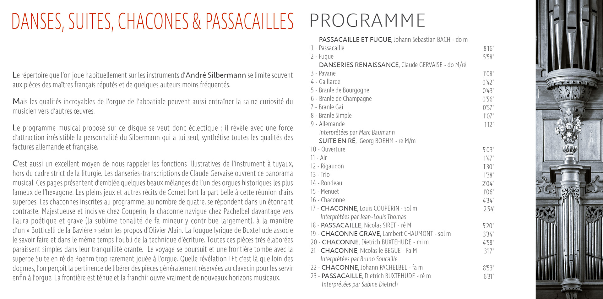 Réalisation et mise en page de la jaquette de CD – ORGUE, Danses, Suites, Chacones et Passacailles